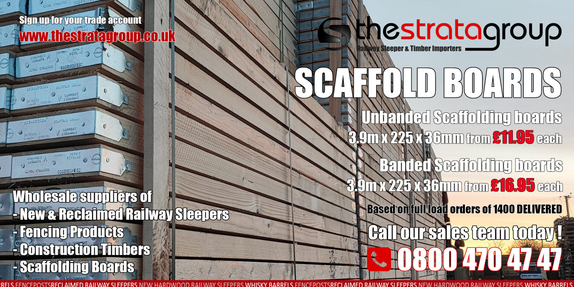 Get 1400 unbanded scaffold boards delivered from only £11.95+vat per board. If banded is what you need, have them delivered from £16.95+vat per board.